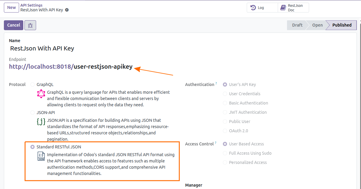 Configure API With Standard RESTful JSON Protocol, and Publish it.